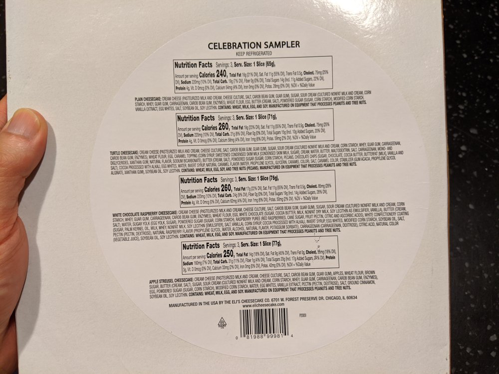 Four of Eli's favorite varieties in one cake! A little something for everyone: Original Plain, Chocolate Truffle, Apple Crumble, and Raspberry Swirl Cheesecake.
